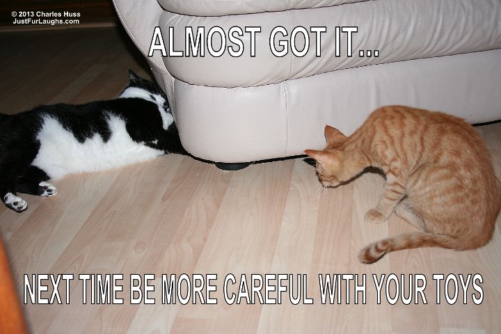 Almost Got It Published April 1, 2013 at 720 × 480 in Almost Got It… Cats trying to retrieve toy from under couch. Share this:Click to share on Facebook (Opens in new window)Click to share on Twitter (Opens in new window)Click to share on Pinterest (Opens in new window)Click to email a link to a friend (Opens in new window)Click to share on Tumblr (Opens in new window)Click to share on Reddit (Opens in new window)Click to share on LinkedIn (Opens in new window)Like this:Like Loading...