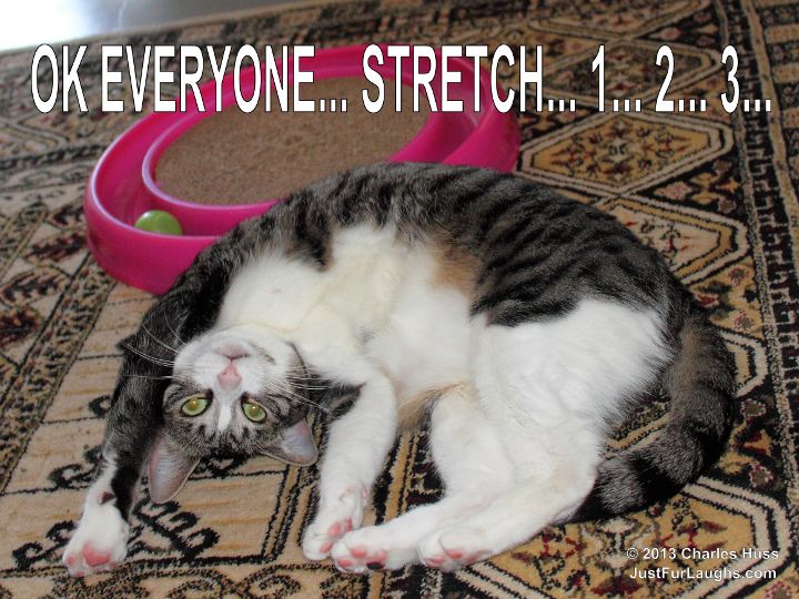 OK Everyone… Stretch… Published February 17, 2013 at 720 × 540 in OK Everyone… Stretch… 1… 2… 3… OK Everyone… Stretch… – cat in wierd position Share this:Click to share on Facebook (Opens in new window)Click to share on Twitter (Opens in new window)Click to share on Pinterest (Opens in new window)Click to email a link to a friend (Opens in new window)Click to share on Tumblr (Opens in new window)Click to share on Reddit (Opens in new window)Click to share on LinkedIn (Opens in new window)Like this:Like Loading...